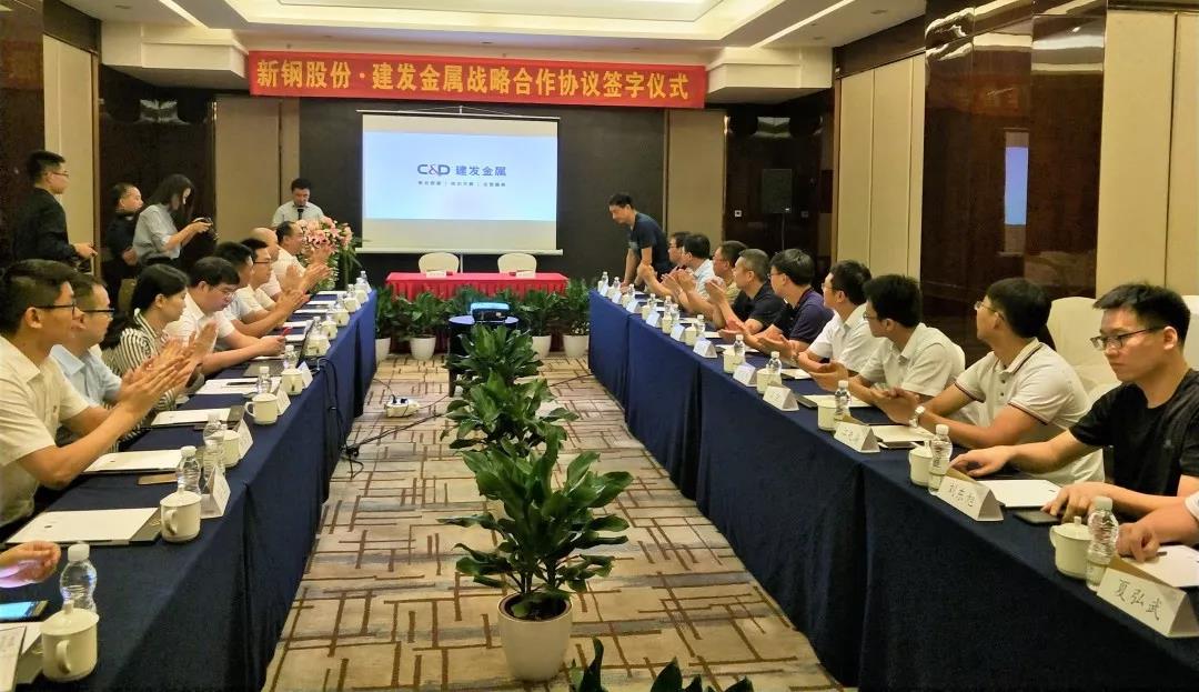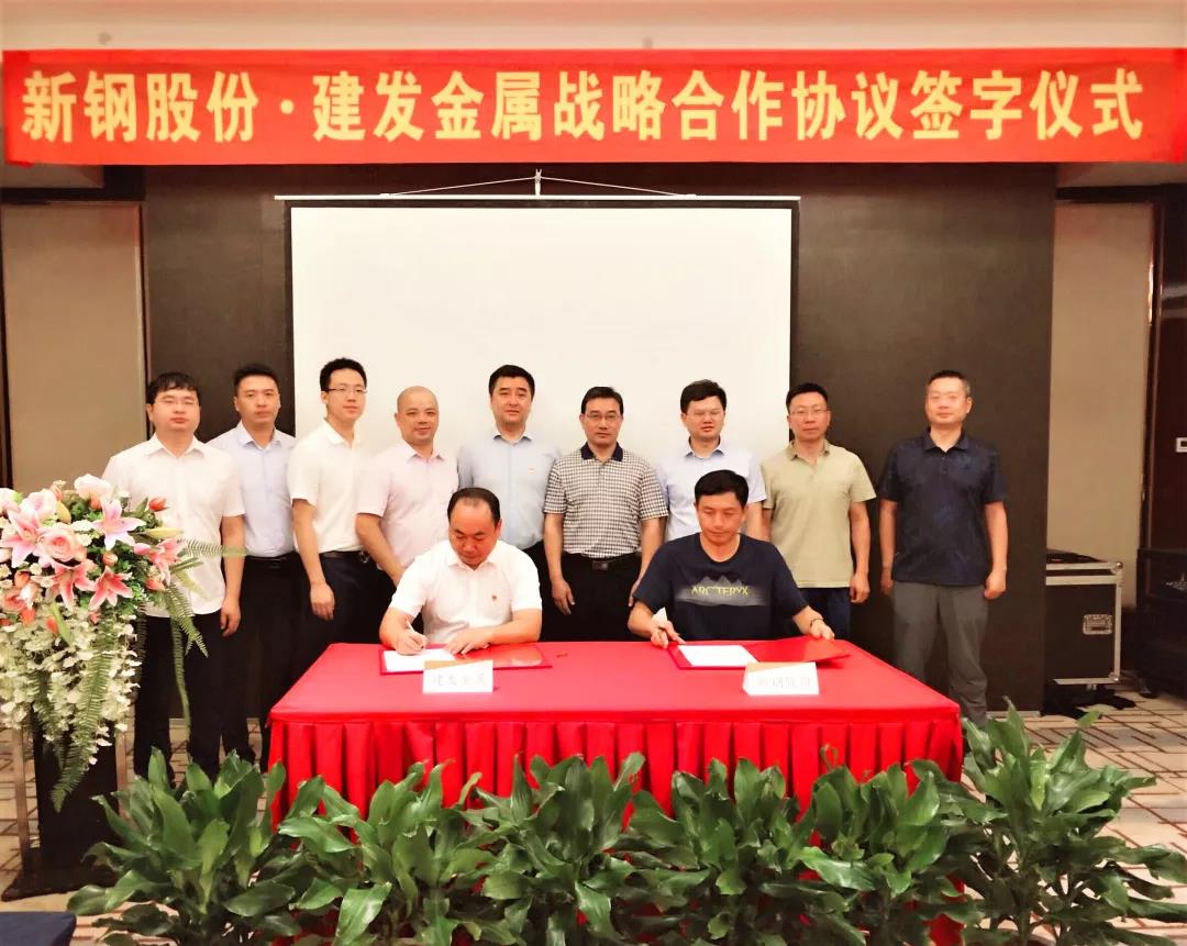 (新鋼股份肖忠東、建發(fā)金屬張清華分別代表雙方簽訂戰略合作協(xié)議)