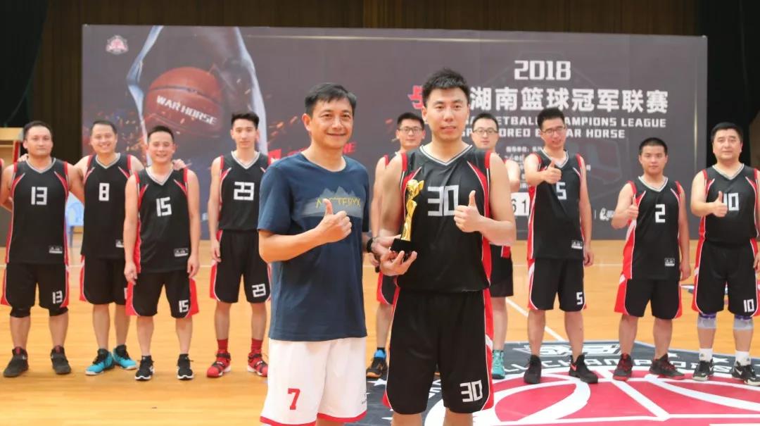 (張清華為新鋼股份籃球隊頒發(fā)冠軍獎杯)