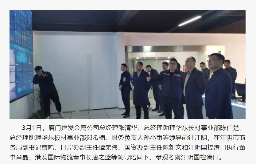 建發(fā)金屬參訪(fǎng)考察江陰國控港口并達成合作意向