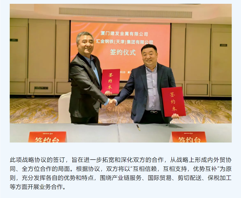 內外貿協(xié)同,全方位合作| 建發(fā)金屬與匯金鋼鐵集團簽訂戰略合作協(xié)議